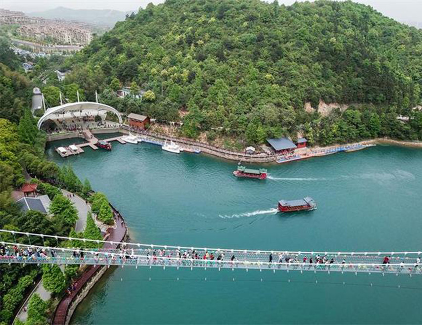 一天的活动,从团建互动到游船、龙舟竞渡、挑战玻璃桥、真人CS镭战、飞跃丛林……