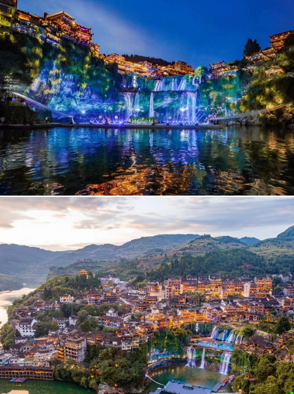 🔹拥有两千多年历史,又被称为”挂在悬崖瀑布上的千年古镇”